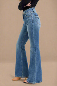 JUDY BLUE High Waist Two Button Flare With Button Flap Pockets