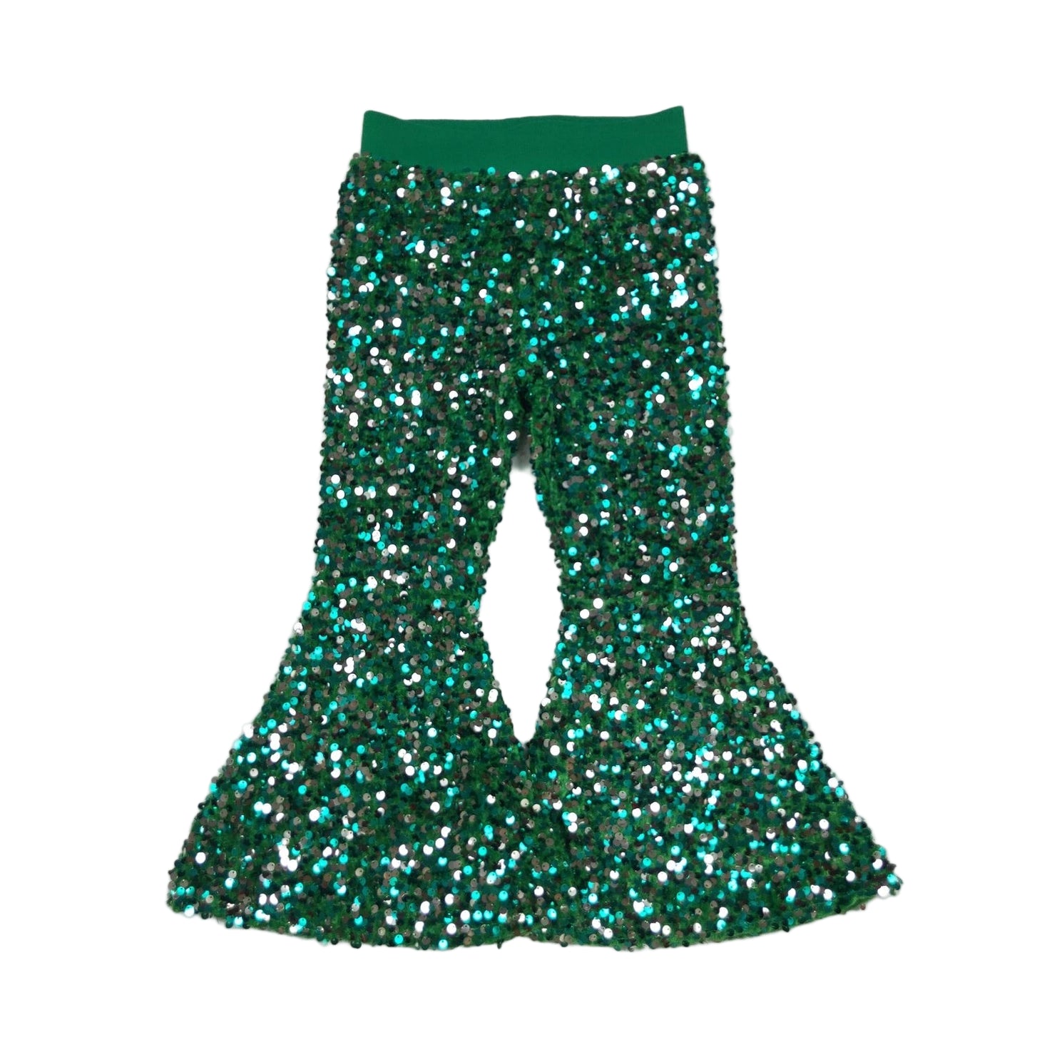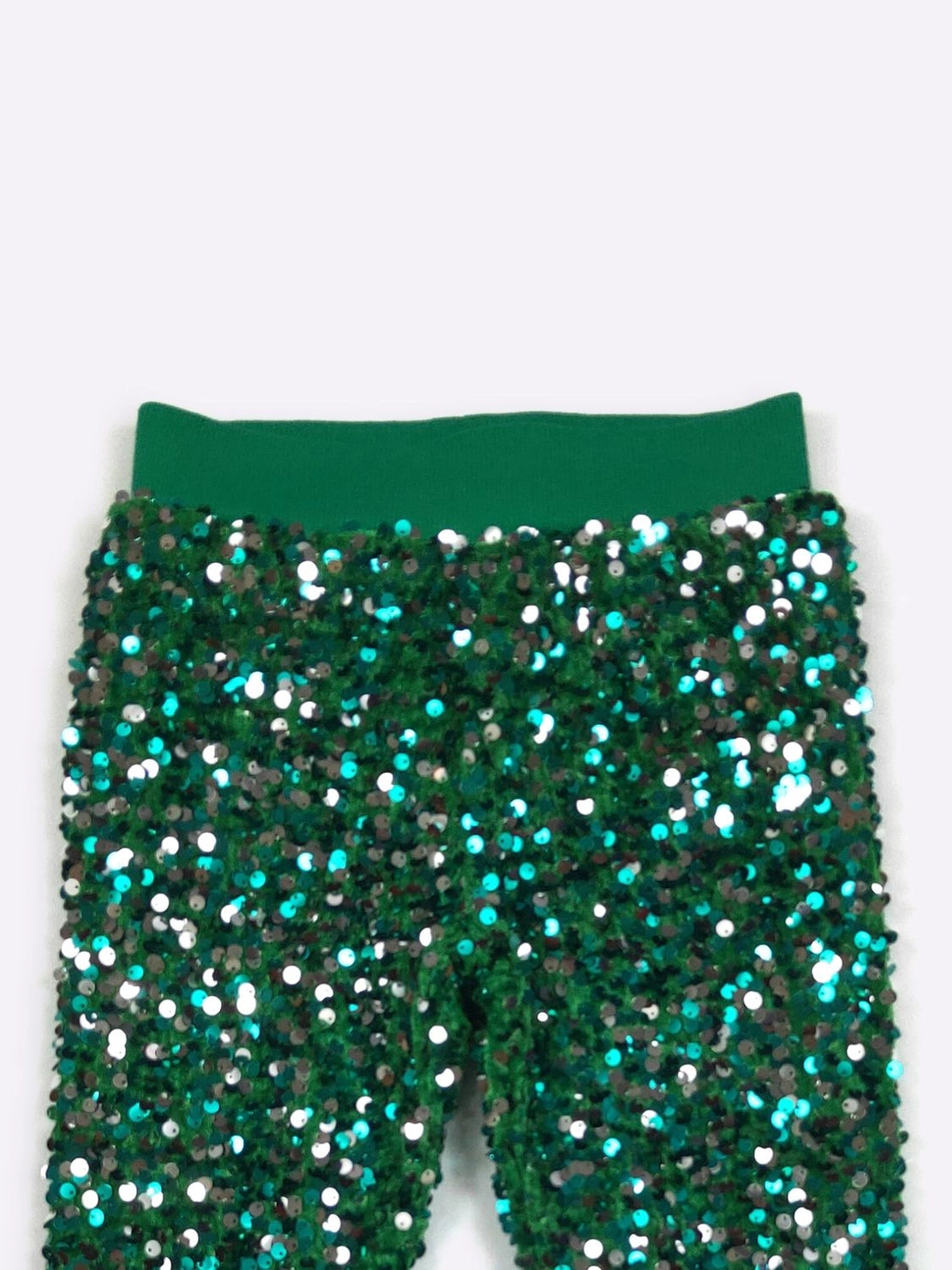 Let her shine brighter than the Christmas tree in these dazzling Emerald Sparkle Sequin Bell Bottoms. Covered in shimmering green sequins from waist to hem, these flares bring pure joy to every twirl. A soft, stretchy waistband ensures a comfy fit while she dances, plays, or poses for holiday photos. Pair with a sweet Christmas top or cozy sweater for the perfect festive outfit!