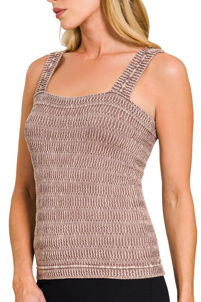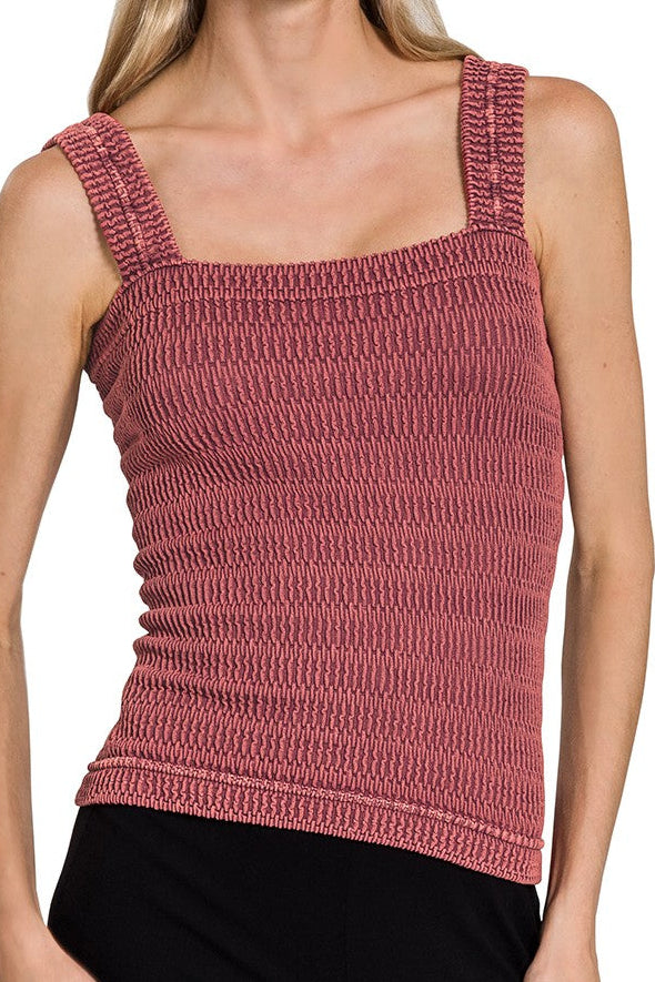 Clean, elevated, and endlessly wearable, The Refined Texture Tank is a seamless essential designed for everyday versatility. Crafted from a stone-washed fabric with a subtle wrinkle texture, it offers a softly structured look while remaining comfortable and easy to wear.