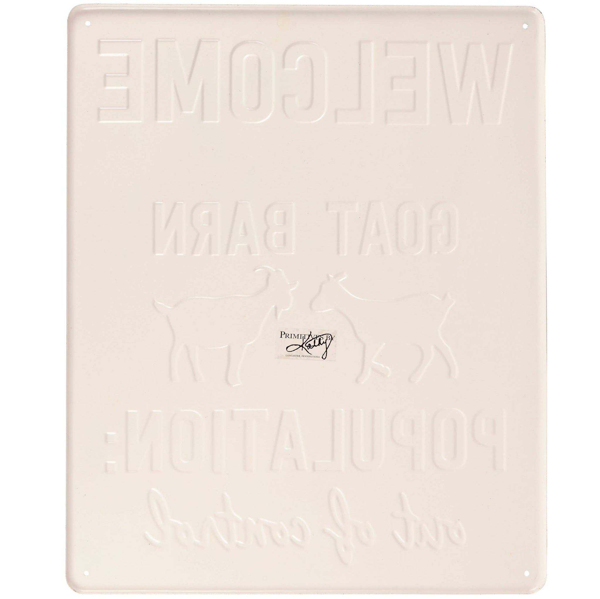 A metal wall décor piece from our Homestead Collection displaying goat silhouettes with a fun farm inspired sentiment that reads "Welcome To The Goat Barn - Population: Out Of Control." Farm sign design features embossed details and a rust finish for an aged appearance. Our Welcome To The Goat Barn metal wall décor is easy to hang against wall using the included mounting hardware and pre-drilled holes in each corner. A rustic farm-themed home accent perfect for everyday display.