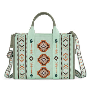 Montana West Aztec Retro Arrows Dual Sided Print Large Tote/Crossbody-Green