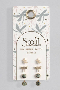 Scout Curated Wears - Stud Trio Ear Jacket Set - Dragonfly/African Turquoise/Gold