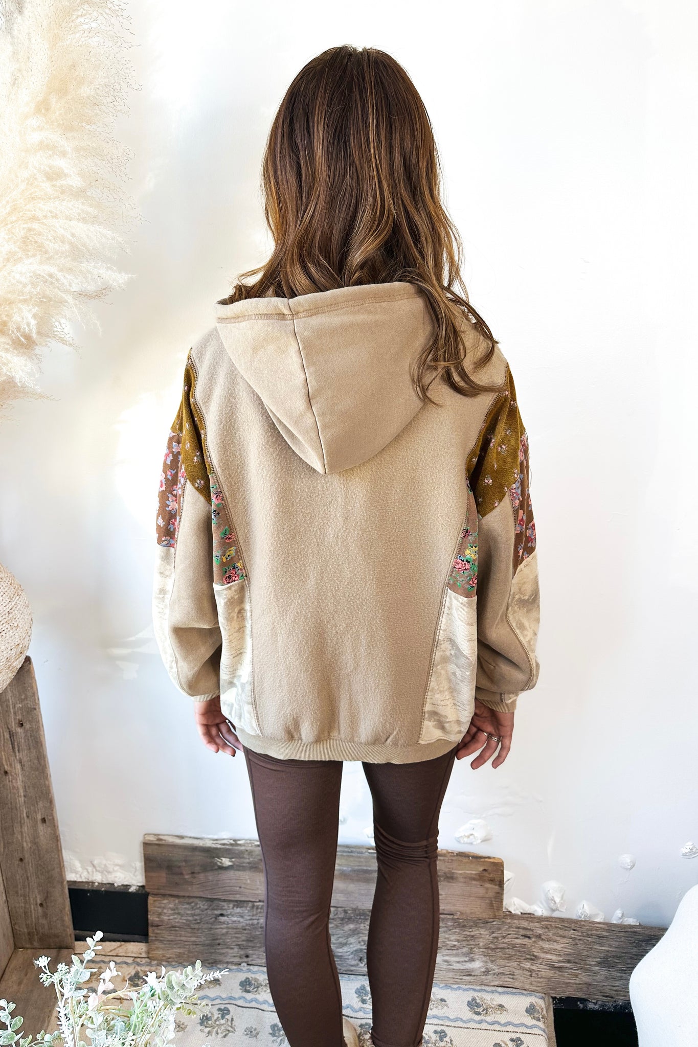 A cozy mix of vintage soul and modern comfort, our Prairie Star Patch Hoodie Jacket brings together the prettiest blend of textures and patterns. Designed in a soft, mineral-washed terry knit with a hint of western whimsy, this zip-up features star embroidery, floral patchwork sleeves, and a lived-in feel that’s equal parts comfort and character.