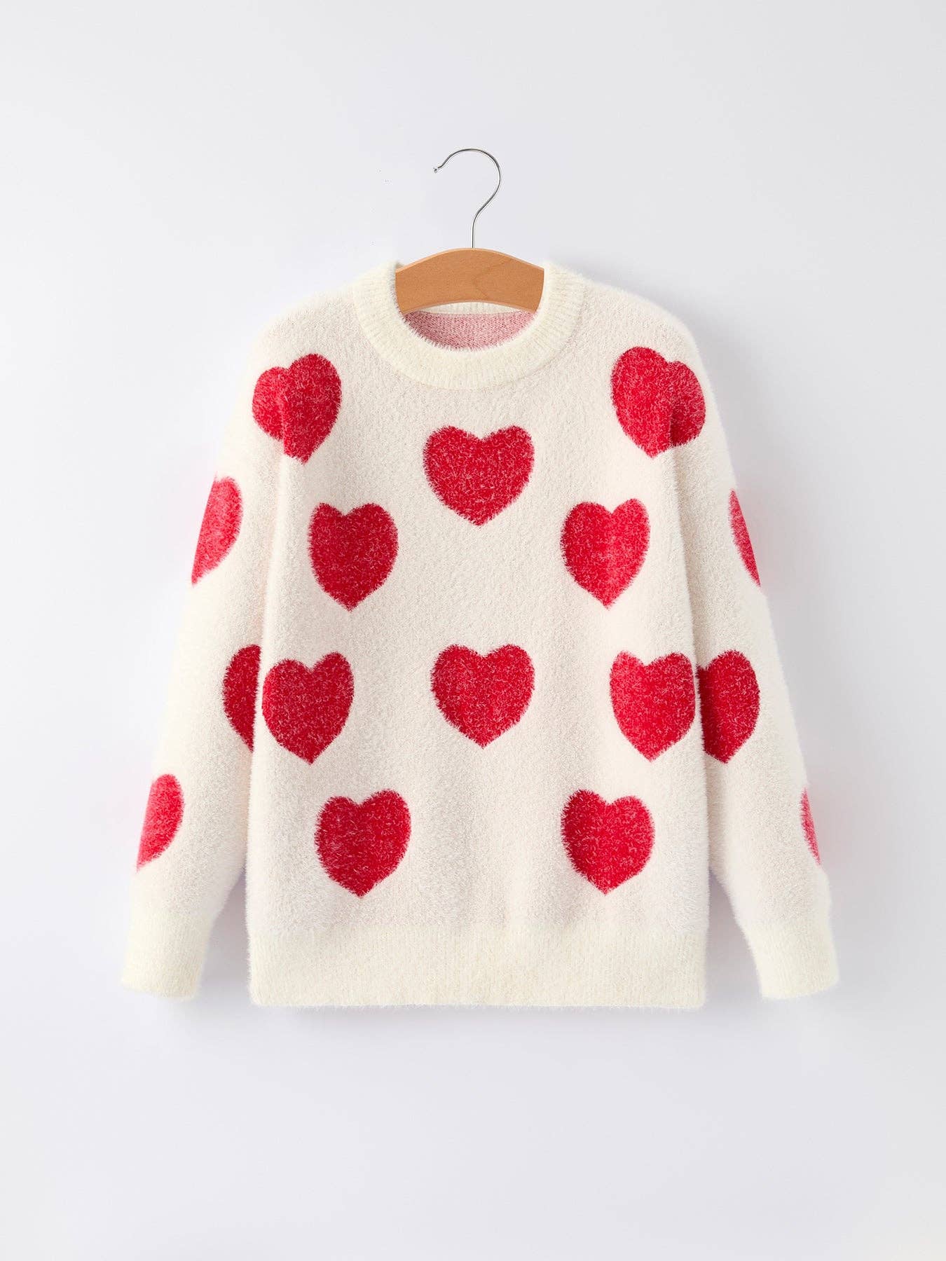 Experience the warmth of togetherness with the White Mom and Me Heart Print Knit Pullover Sweater. Its soft, cozy knit fabric in a timeless off-white shade offers comfortable wear for both mom and child. The sweet heart print highlights your special bond, making it the perfect choice for matching outfits that celebrate love and family moments. Stay stylish and connected with this charming pullover.