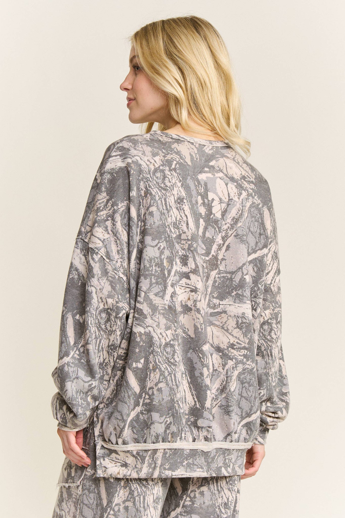 The vintage wash gives it a lived-in feel, the soft blend gives all-day comfort, and the camo-tree pattern gives it that rustic-meets-modern edge we love at the Whiskey Wrangler. Dress it up with leather boots and a denim jacket, or keep it simple with joggers and your favorite tee underneath — either way, it’s a go-to for your off-duty days.